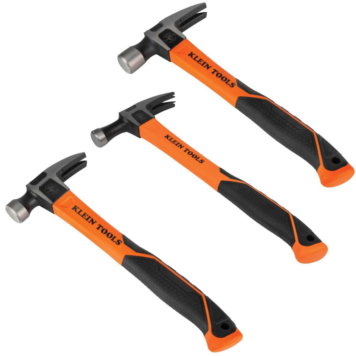 Die geraden Klauenhämmer von Klein Toolsbestehen aus hochfestem Fiberglas für optimale Stoßdämpfung und wurden speziell für das Entfernen von NM-Klammern (Romex®) oder für das einfache Ziehen von Nägeln entwickelt. Diese sind mit glatten, geschmiedeten Stahlköpfen von 18 Unzen, 16 Unzen oder 20 Unzen erhältlich, um die Abnutzung zu verringern. Die robusten Griffe haben eine rutschfeste Grifffläche für mehr Komfort und eine Aufhänge-Öse zum Anbinden oder Aufhängen.