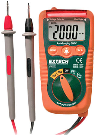 Additional features include built-in storage clips for integrated test leads, double molded housing to provide extra protection, and over-range and low battery indication. The DM2200 comes complete with test leads and two AAA batteries.
